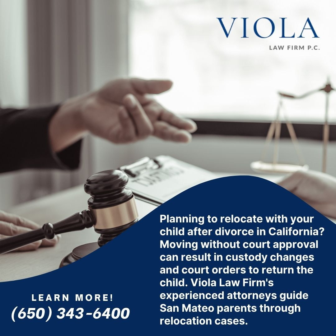 Violating custody orders or moving without permission may put parental rights at risk. Working with a child custody attorney can provide the guidance needed to present a strong case in court. With a track record of success, the firm offers trusted representation for parents seeking relocation or defending against it. For immediate assistance with divorce and child custody matters, contact Viola Law Firm at (650) 343-6400 today.